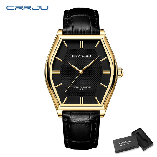 Relógio Masculino CRRJU de Luxo, com Pulseira de Couro e a Prova D'água.
